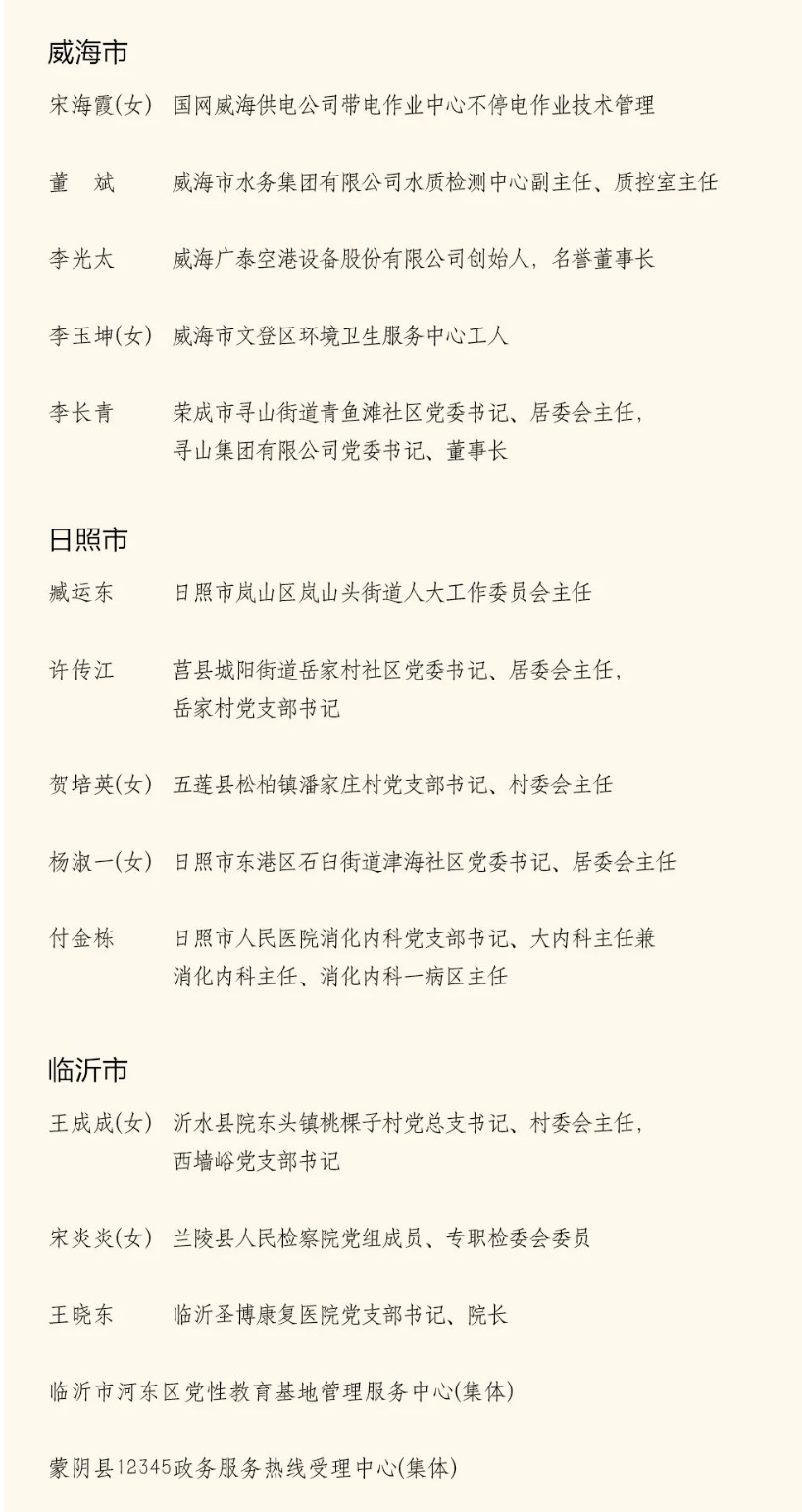近日,中共山東省委組織部根據(jù)常態(tài)化開展“發(fā)現(xiàn)榜樣”活動工作安排,結合全省學習貫徹習近平新時代中國特色社會主義思想主題教育,2023年度“發(fā)現(xiàn)榜樣”活動自下而上有序開展,重點面向基層一線,注重用身邊榜樣引導身邊黨員、以身邊事教育身邊人,全省基層黨組織廣泛發(fā)動、認真舉薦,經(jīng)過逐級審核把關、綜合比選、公開公示,充分征求有關部門單位和黨員群眾意見,確定省級“發(fā)現(xiàn)榜樣”,現(xiàn)已正式公布。