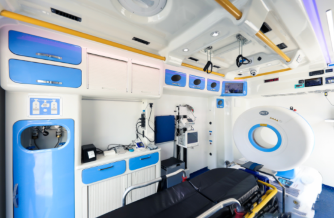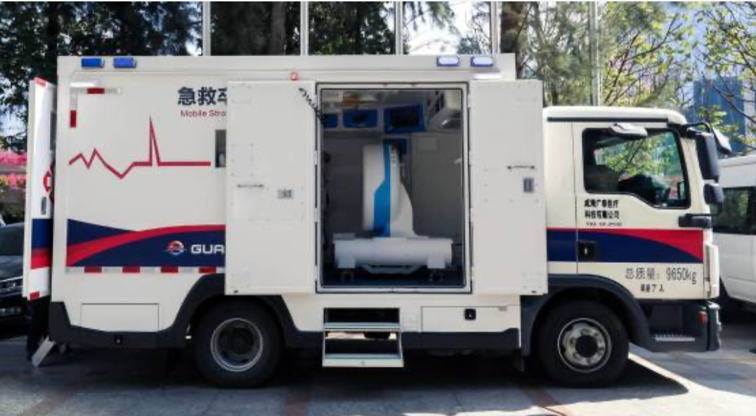 5G移動(dòng)卒中單元是將移動(dòng)CT和相關(guān)的檢驗(yàn)儀器配備在救護(hù)車(chē)上,在5G網(wǎng)絡(luò)下,形成集神經(jīng)癥狀學(xué)檢查、CT診斷和靜脈溶栓治療為一體的救治單元。